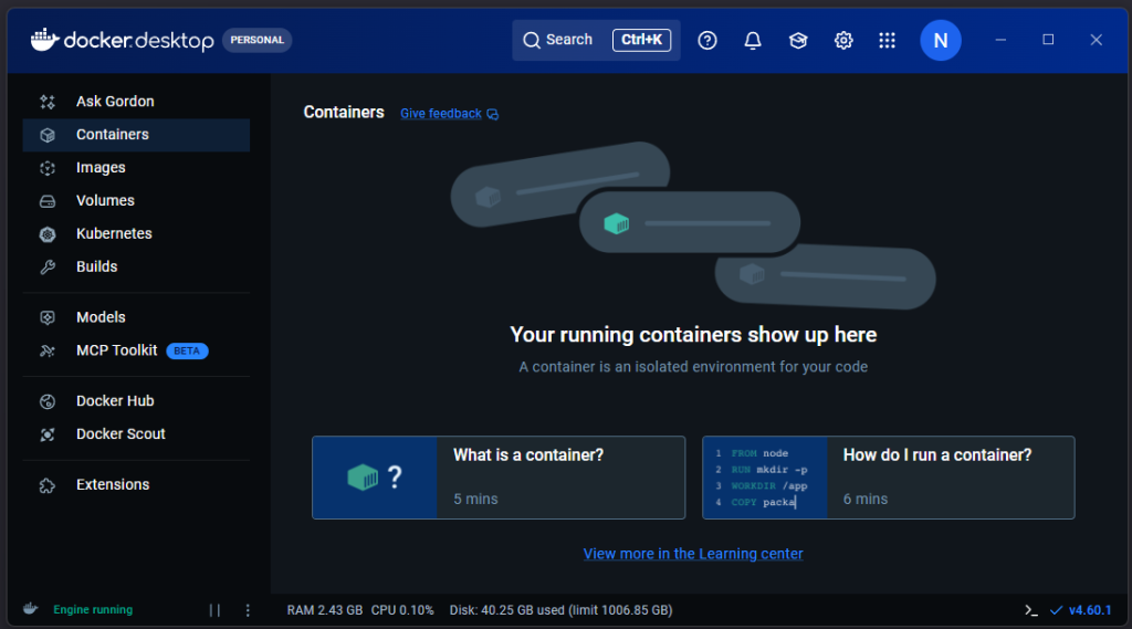 Voraussetzung für die Installation ist eine aktive Instanz von Docker Desktop. Parallel dazu sollte ein Telegram-Bot über den @BotFather erstellt werden, um später den notwendigen API-Token griffbereit zu haben s. Anleitung