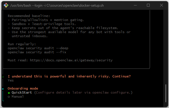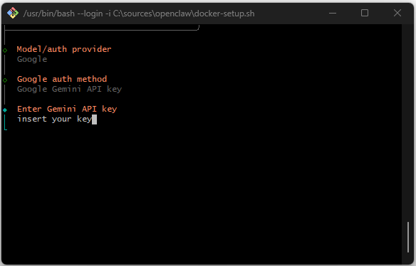 docker compose run --rm openclaw-cli onboard