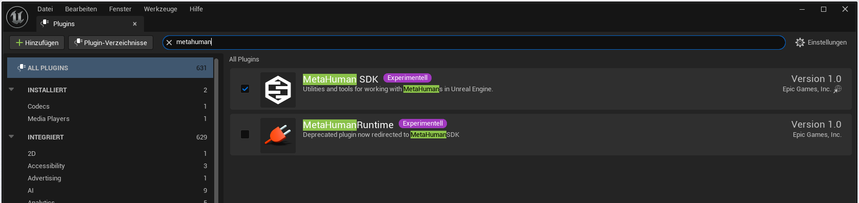 Plugin: MetaHuman SDK