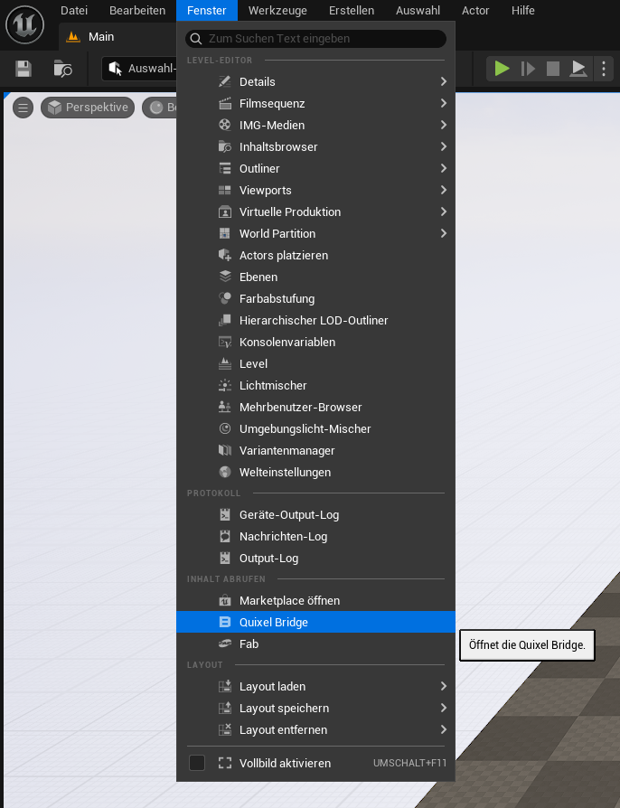 Quixel Bridge is an integrated library in Unreal Engine that allows you to access a large collection of photorealistic 3D assets, textures, and materials from the Megascans library. The content can be imported directly into the Unreal project with a click of the mouse and is especially useful for realistic environments, characters, or details. Quixel Bridge is free for all Unreal Engine users and simplifies the creation of high-quality scenes without custom modeling.