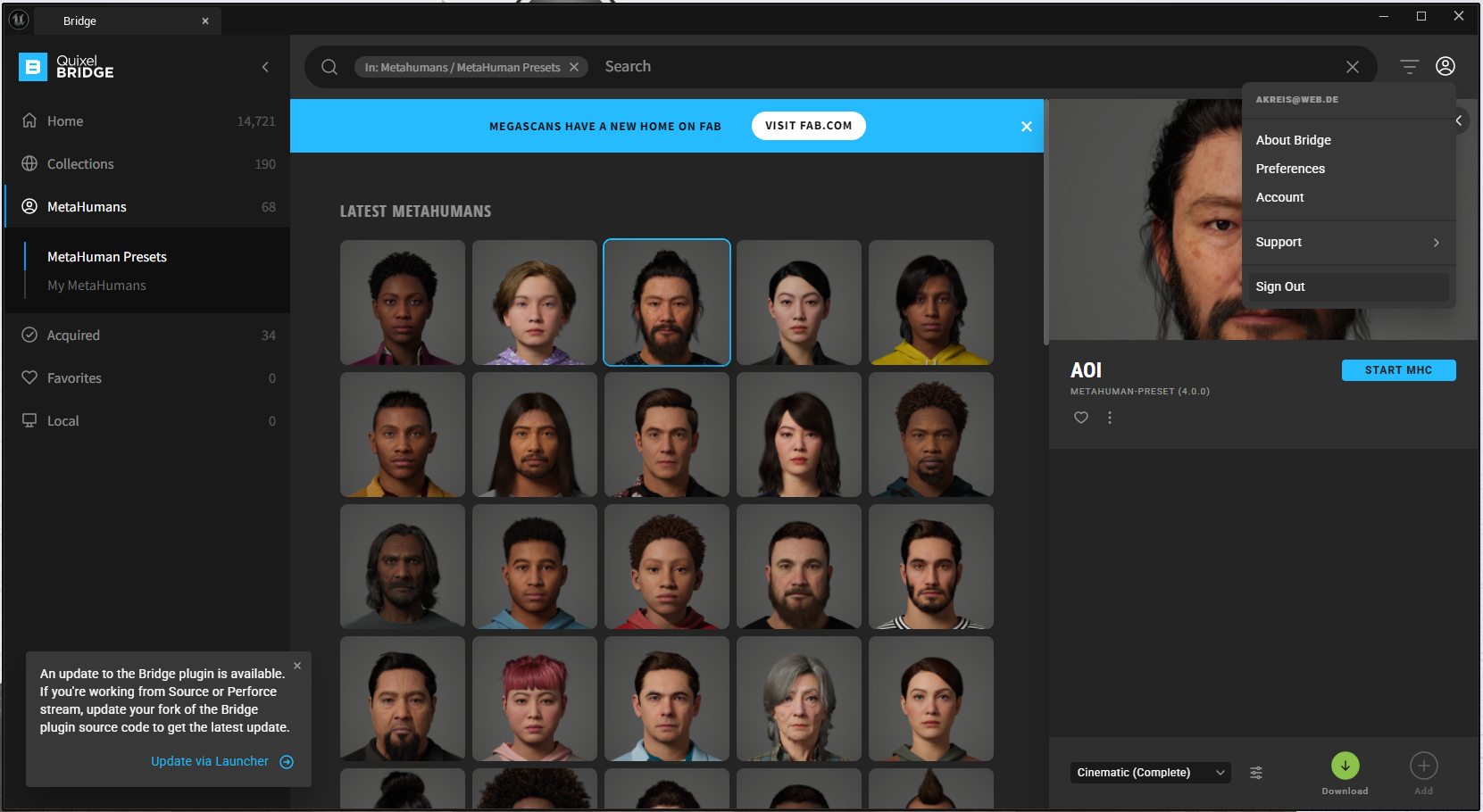 Quixel Bridge offers a wide selection of pre-modeled and textured characters that can be used directly in Unreal Engine.
