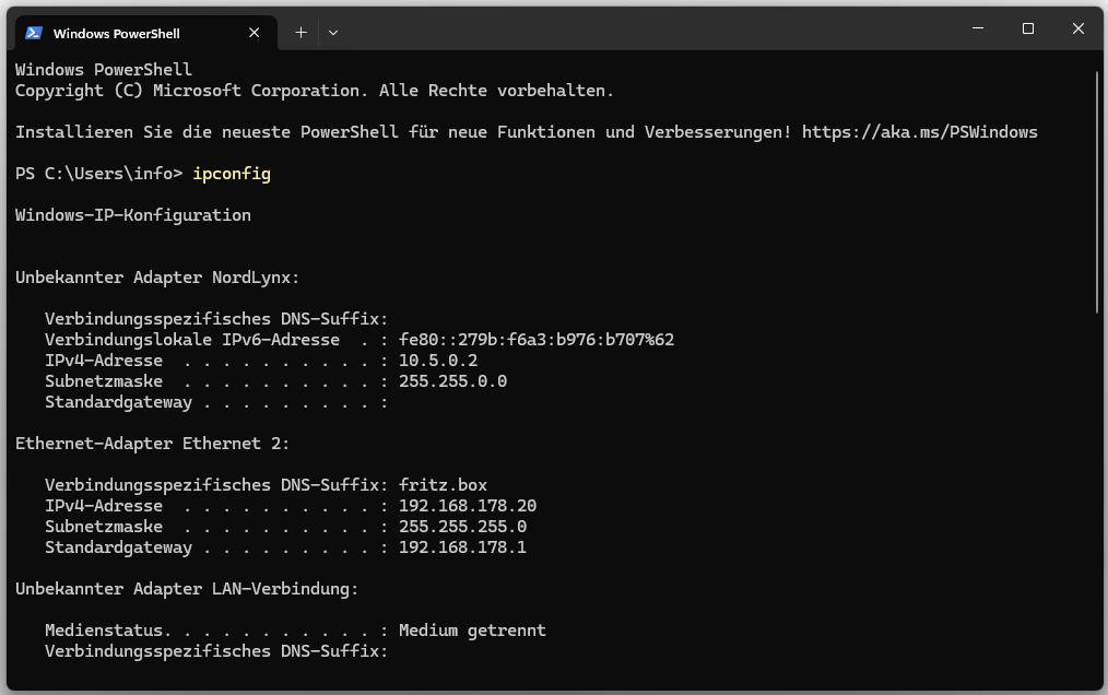 For the connection to work, the computer’s local IPv4 address must first be determined.