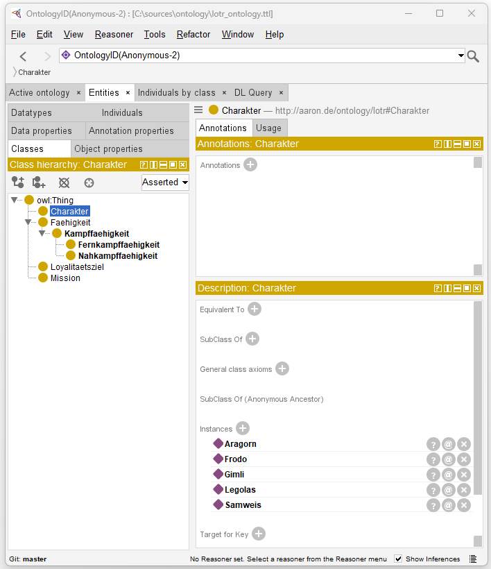 Assume that we model an ontology with characters from Lord of the Rings. In this ontology are the following pieces of information: