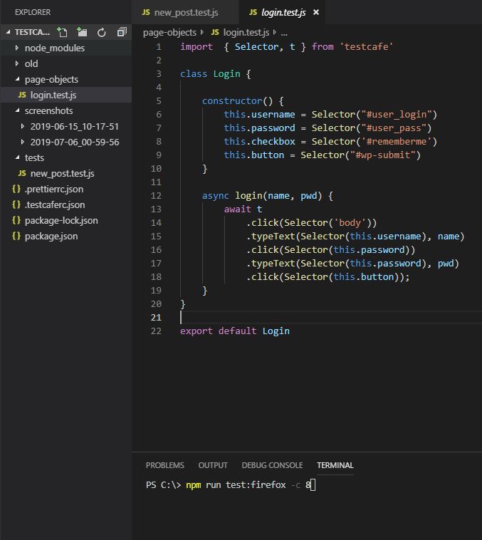 The login has been extracted into a page object: