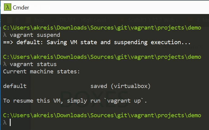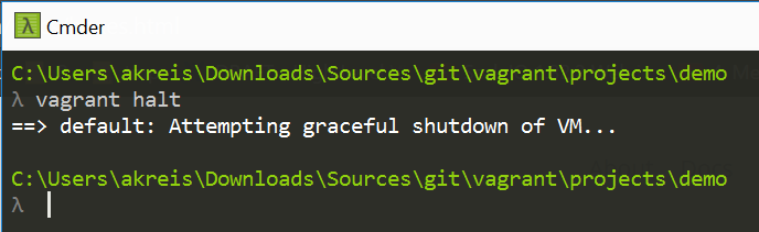// Versioning the Vagrantfile via git + .gitignore cd < project folder > git init git add Vagrantfile git commit -m “initial import of Vagrantfile”