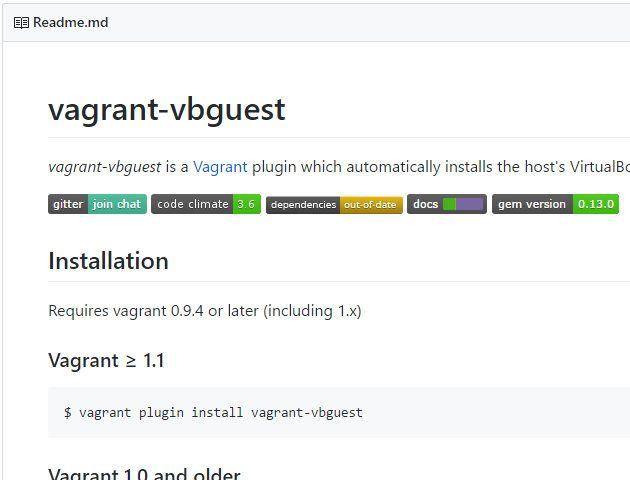 // Install ‘vbguest’ plugin vagrant plugin install vagrant-vbguest