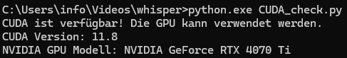 CUDA (Compute Unified Device Architecture) is a technology and programming interface developed by NVIDIA. It enables programs like PyTorch to use the computational power of an NVIDIA GPU. GPUs are particularly powerful for parallel computations because they can perform many operations simultaneously. When a model like Whisper needs to process large amounts of data, CUDA can significantly reduce computation time by using the GPU for calculations.