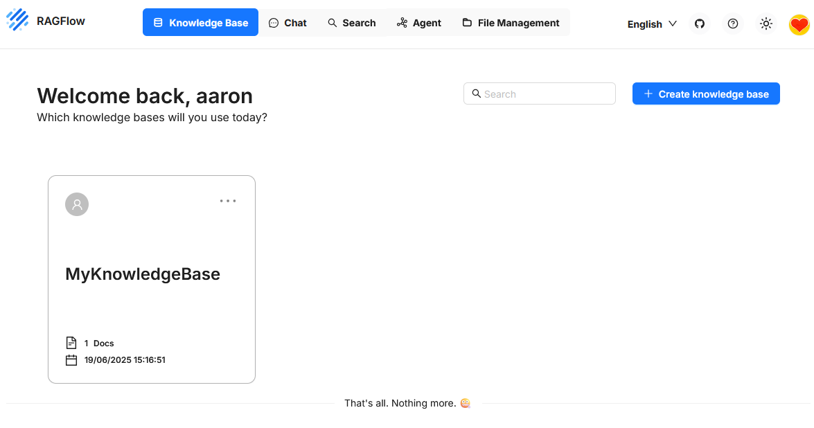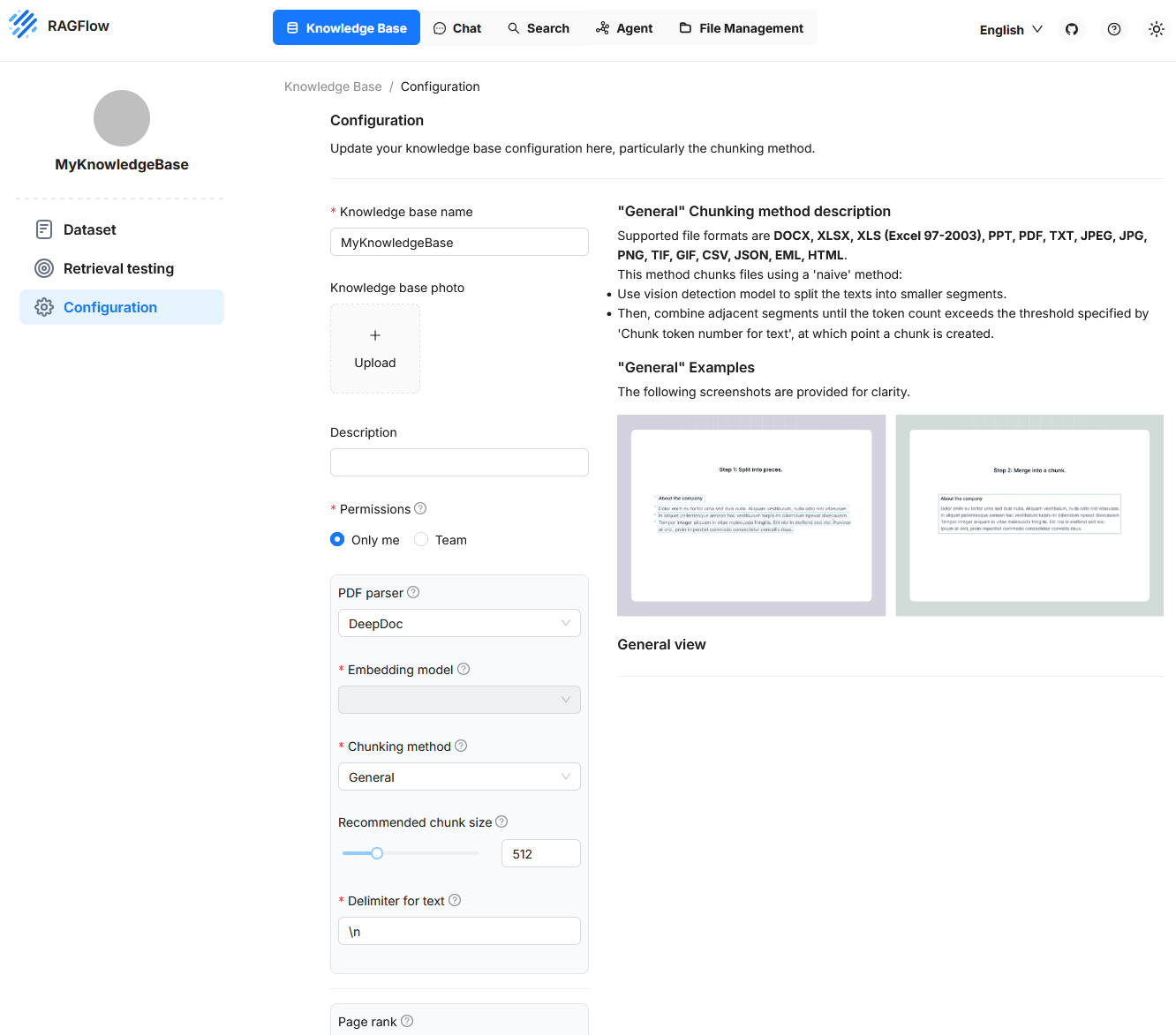 En RAGFlow, la Knowledge Base es el repositorio central para los contenidos que se buscan en las consultas y se utilizan como base para las respuestas generadas. Está compuesta por fragmentos vectorizados extraídos de documentos importados y está directamente conectada a los componentes de recuperación y clasificación.