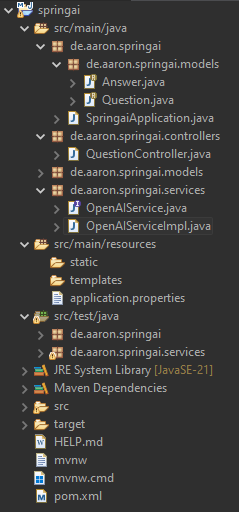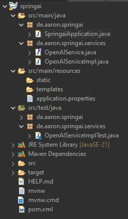 Dentro de la aplicación Spring Boot, es decir, en el archivo “application.properties”, referenciar la clave de OpenAI o la variable de entorno (OPENAI_API_KEY).