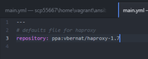 // Listado de variables dentro de la carpeta ‘defaults’ vi /home/vagrant/ansible/roles/haproxy/defaults/main.yml repository: ppa:vbernat/haproxy-1.7