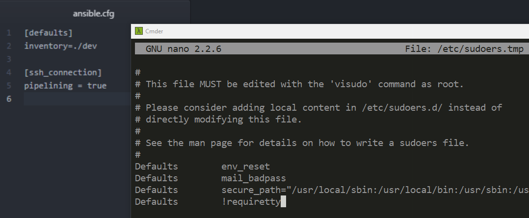 // Aceleración habilitando SSH pipelining sudo visudo vi ~/ansible/ansible.cfg