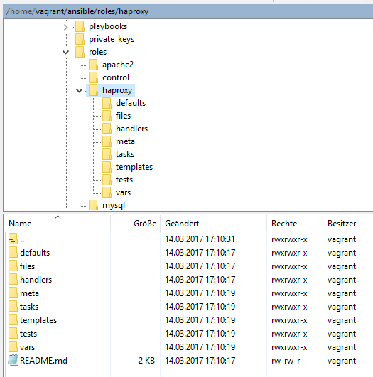 // Crear estructura de roles (se carga desde el repositorio de Ansible) mkdir roles cd roles ansible-galaxy init haproxy ansible-galaxy init apache2 ansible-galaxy init mysql