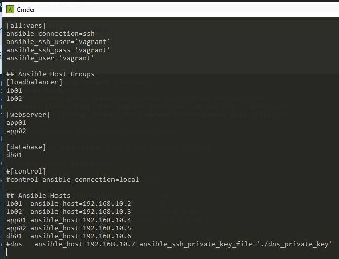 // Probar el acceso SSH p. ej. lb01 (192.168.10.2) ssh vagrant@192.168.10.2