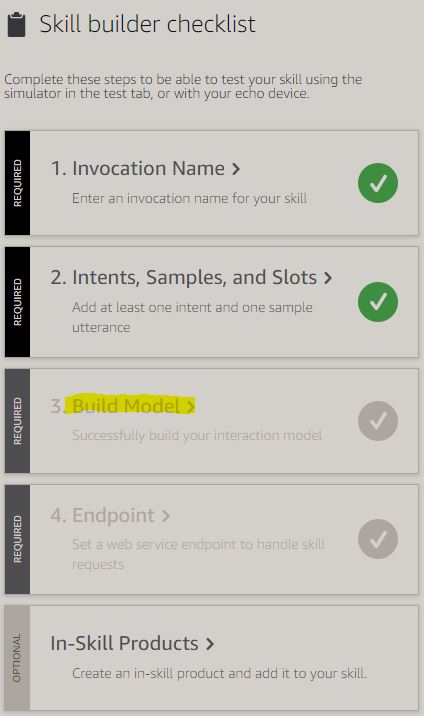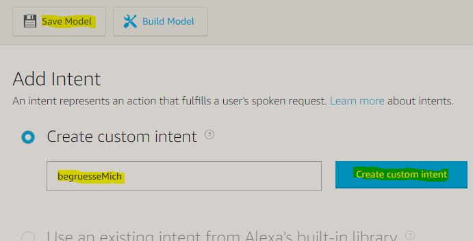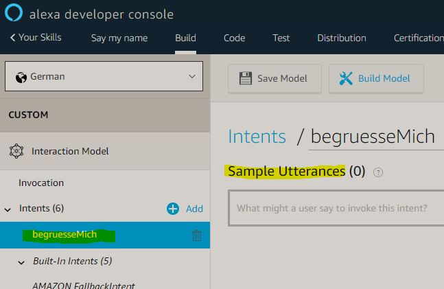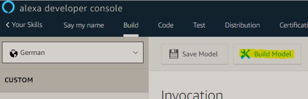 Im letzten Schritt kann der Skill gebaut werden. Hierzu einfach ‘Build Model’ auswählen: