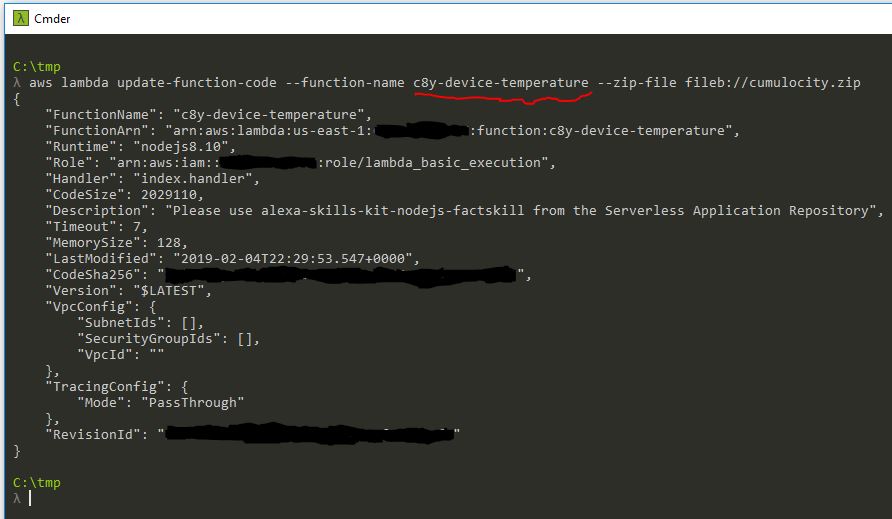 aws lambda update-function-code –function-name c8y-device-temperature –zip-file fileb://cumulocity.zip