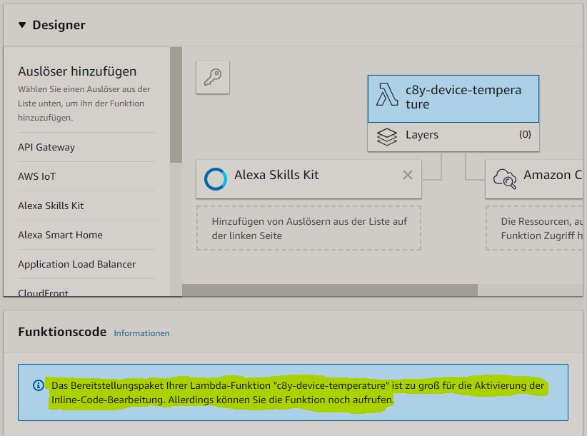 Jetzt kann der Code via Alexa ausgeführt werden: