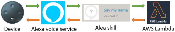 | Intents, Samples & Slots | Intents Alexa stellt bestimmte Funktionen wie z.B. AMAZON.StopIntent zur Verfügung. Diese Funktion wird aufgerufen, sobald der Anwender “Alexa, Stop’ sagt. Wir haben zusätzlich zu den bereits existierenden Intents auch die Möglichkeit, eigene Funktionen zu definieren, die auf bestimmte Sätze, die wir zuvor definieren reagieren. Samples Die zuvor definierten Sätze, die zu einer Funktionsaufruf führen, werden als Samples bzw. ‘Sample Utterances’ bezeichnet z.B. kann auf die Aussage “Ich heisse Aaron’ eine Funktion aufgerufen werden, der mich anschließend namentlich begrüßt. Slots Die zuvor definierten Sätze sind statisch. Slots dienen dazu, einzelnen Passagen innerhalb der statischen Sätze dynamisch d.h. mit Lückenfüller zu ersetzen z.B. “Ich heiße {name}”. |