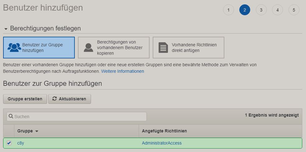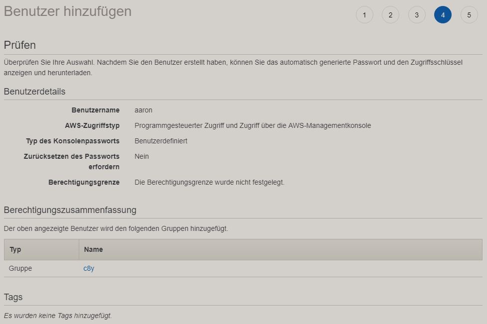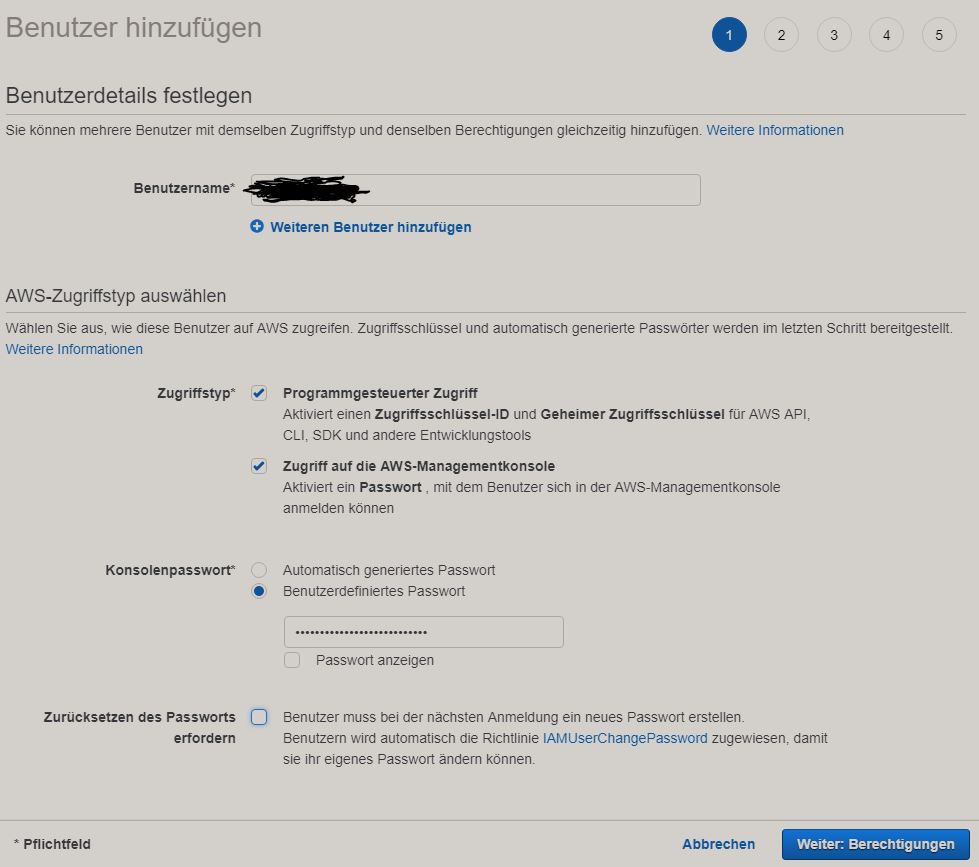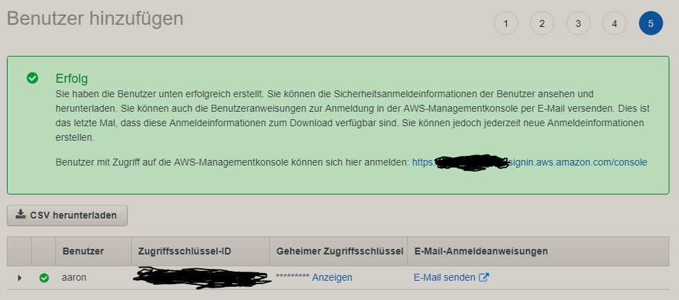 Nach der Installation der CLI müssen wir unter der folgenden Seite wie folgt ein IAM Benutzer anlegen s. Anleitung.