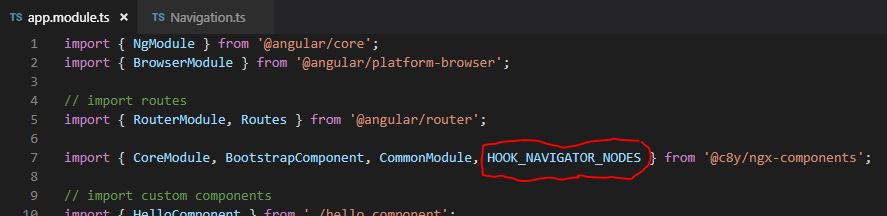 Anschließend muss die Navigation innerhalb von ‘app.module.ts’ aktiviert werden: