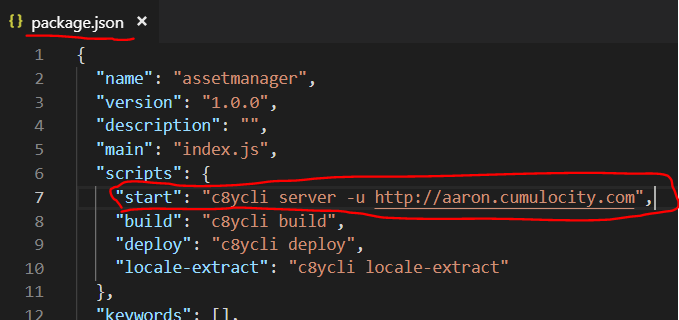 Innerhalb der ‘package.json’ muss zunächst einmal der Ziel-Tenant angegeben werden: