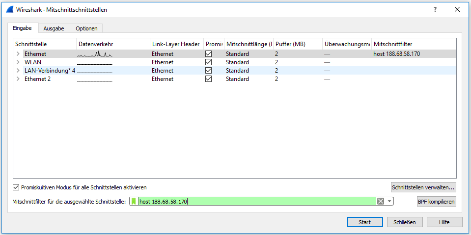 - Filter um die ankommenden Frames von einer bestimmten IP-Adresse abzufangen: src host