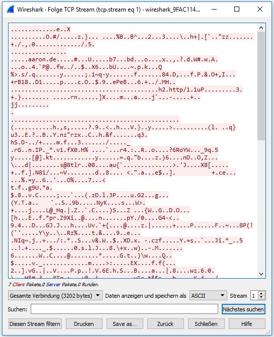 Hingegen sieht der Mitschnitt einer SSL-Verbindung wie folgt aus: