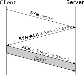 Die folgende Abbildung zeigt den ersten TCP Frame. Beim ersten Frame handelt es sich um eine ‘sync’ Anfrage. Im Wireshark sieht man, wie der entsprechende Flag gesetzt wurde: